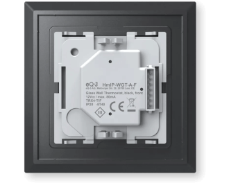 - De glazen thermostaat bestaat uit twee onderdelen: een front (HmIP-WGT-A-F) en een inbouw voeding met relais (HmIP-MMR). Zie afbeeldingen.