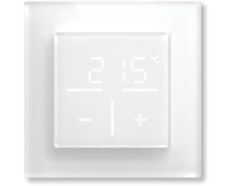 - De glazen thermostaat bestaat uit twee onderdelen: een front (HmIP-WGTC-F) en een inbouw voeding met relais (HmIP-MMR). Zie afbeeldingen.