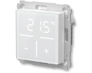 Glazen thermostaat met ingebouwde 230V voeding. Met + en - touch bediende knoppen voor gewenste temperatuur